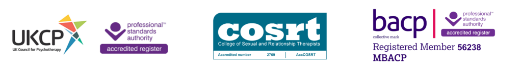 I am an experienced and fully qualified Psychosexual and Relationship Therapist, accredited with COSRT (College of Sexual and Relationship Therapists) and UKCP (United Kingdom Council for Psychotherapy).